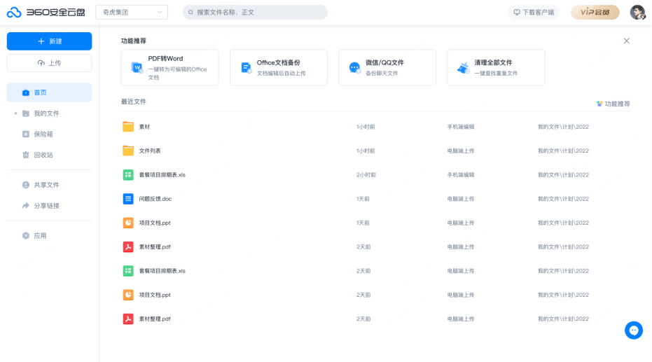 随着云计算、5G等新兴技术的升级迭代,以及消费存储需求的持续增长,用户对于云盘的需求已不仅是存储。为了更好地与快速升级的用户需求相匹配,360安全云盘早在几年前提出将单一的个人云存储工具升级为个人云办公服务平台,并推出了一系列实用的办公能力。